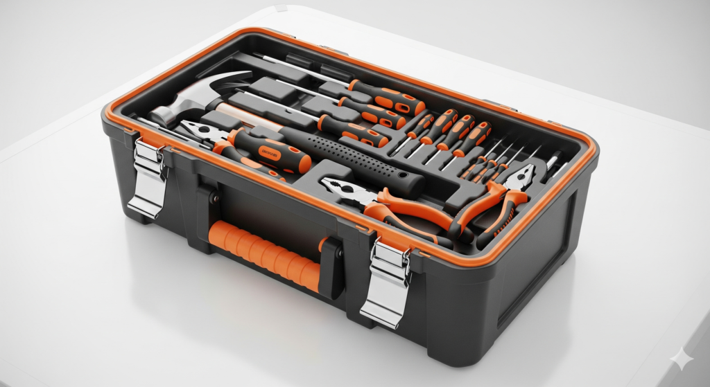 O que é: A clássica maleta ou baú, geralmente de plástico ou metal, para transportar um conjunto básico de ferramentas.